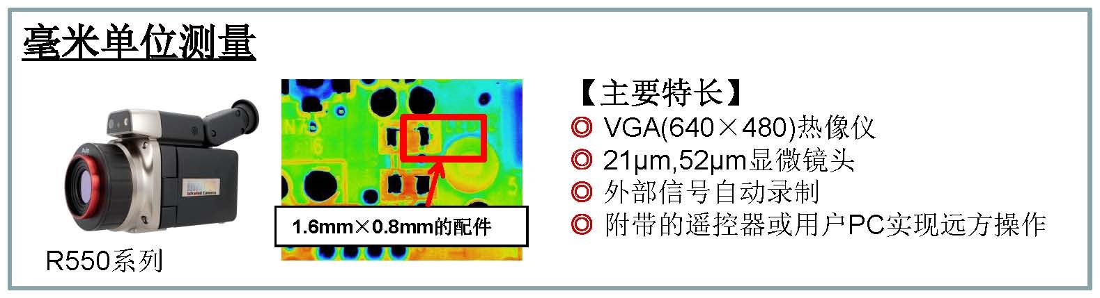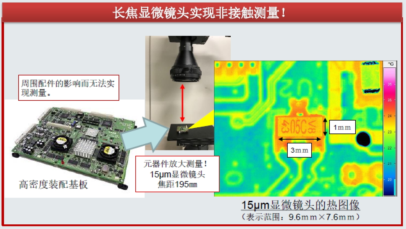 ★高分辨率顯微鏡頭(5μm,15μm)實現(xiàn)熱電偶無法測量的細小配件的溫度分布,應用于機器的散熱設計。
